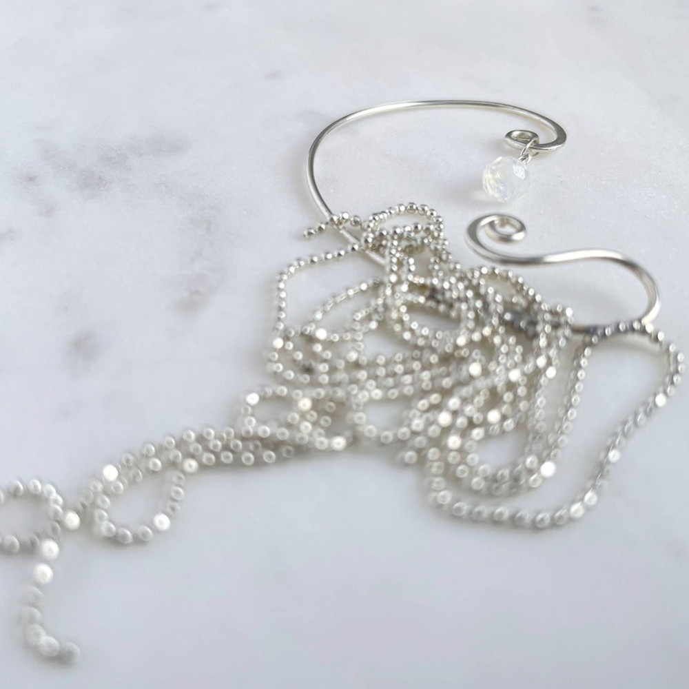 Ezüst fülékszer holdkővel. Merész, feltűnő, szexis darab.