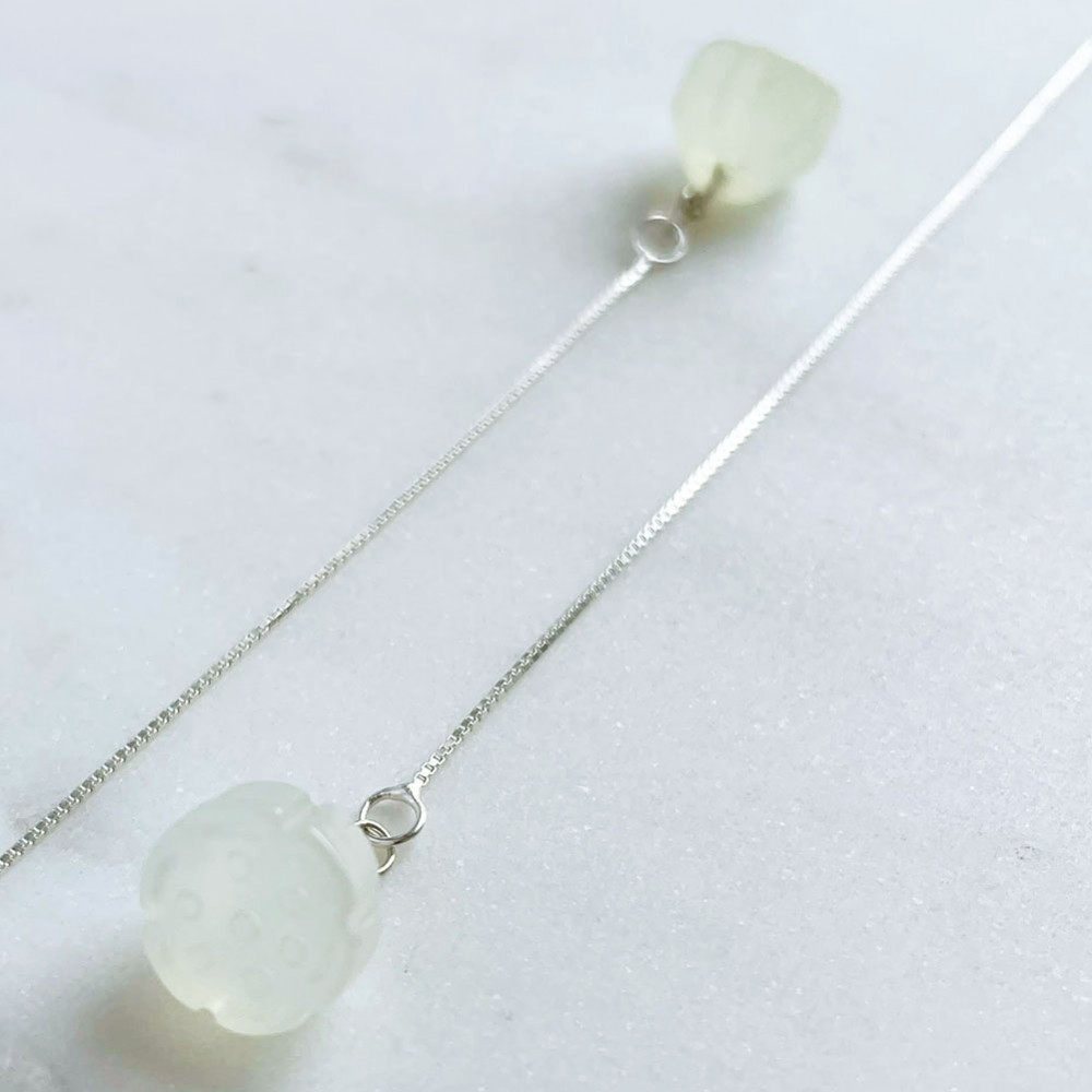 Jáde köves vékony fülbevaló Filigrán, egyszerűségében nemes ékszer, enyhén áttetsző, virág formára faragott jáde kővel.