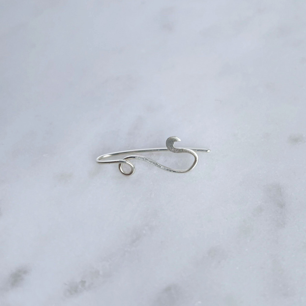 Aszimmetrikus, egyoldalon viselhető, kacskaringós ezüst fülékszer. Különleges, izgalmas darab.